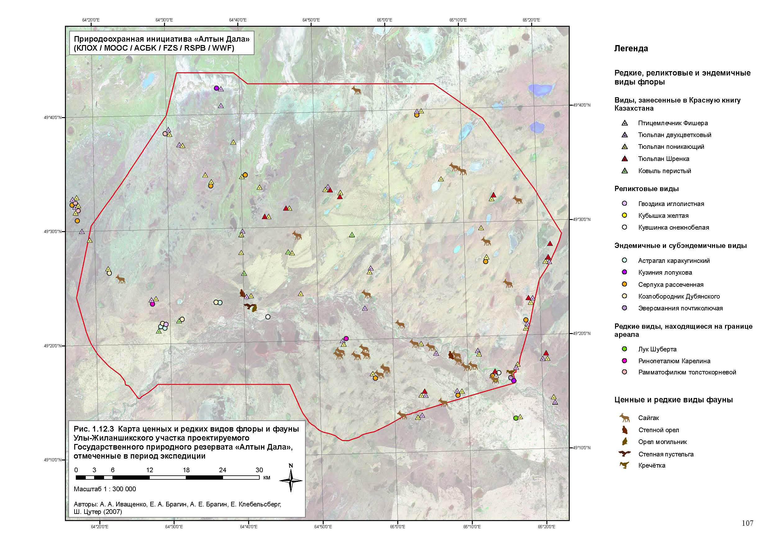 Карта ценных и редких видов (Улы-Жиланшикский участок)